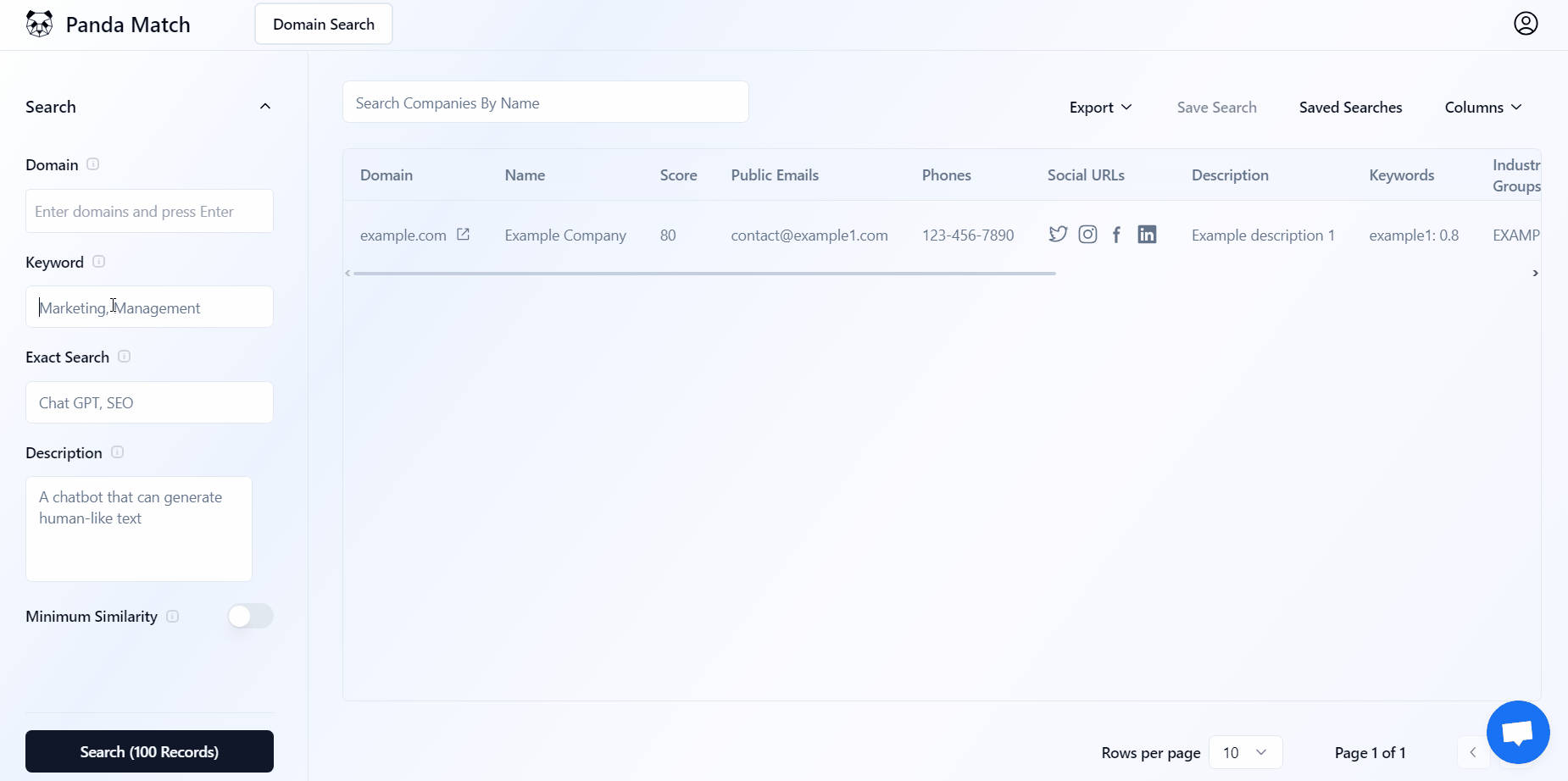 When specifying search keywords, you define the specific terms or phrases that will guide the search process. These keywords are crucial for narrowing down the search results to the most relevant domains or content. You can input up to 10 keywords, each reflecting an important aspect of your search criteria.&#x20;